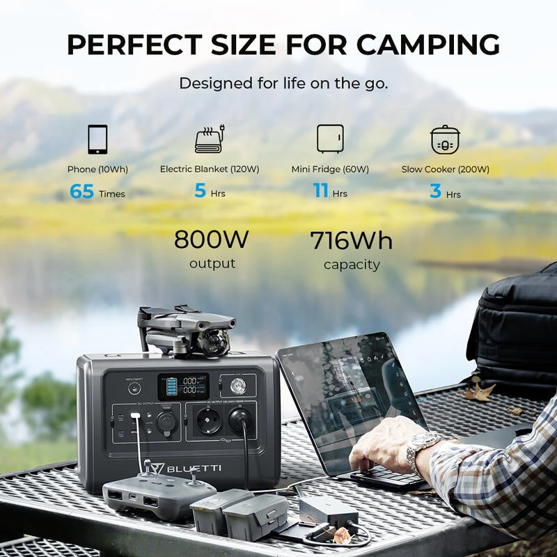Le kit de générateur solaire EB70+PV120 comprend une batterie LiFePO4 de 716 Wh et un panneau solaire de 120 W – assez pour alimenter vos essentiels sur la route ou pendant les pannes de courant.