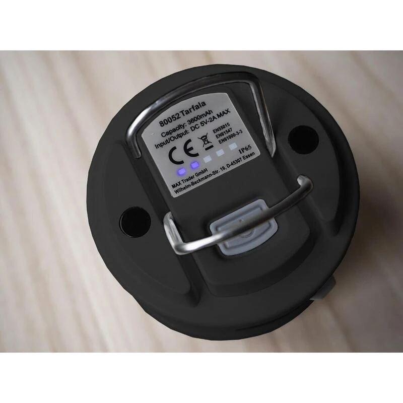 intensité lumineuse variable, crochet de suspension, port USB, powerbank 3600 mAh, blanc chaud, blanc froid, blanc neutre
