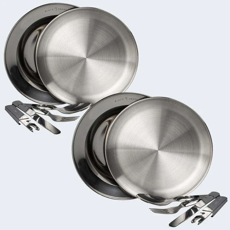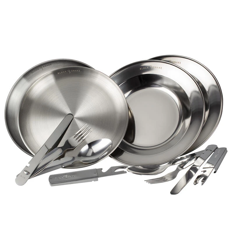 · couverts empilables: couteau, cuillère, fourchette et ouvre-boîte & ouvre-bouteille par set