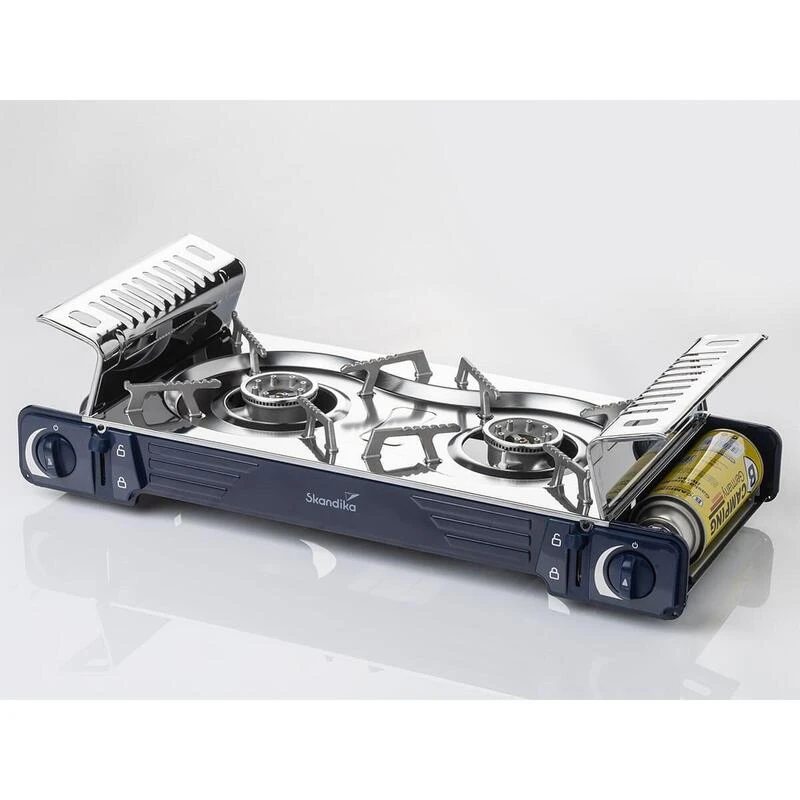Set comprenant Plaque plancha, coupe-vent et réchaud de camping robuste pour cartouches de gaz MSF-1A 227 g – acier inoxydable – puissance réglable – sûr et facile à utiliser